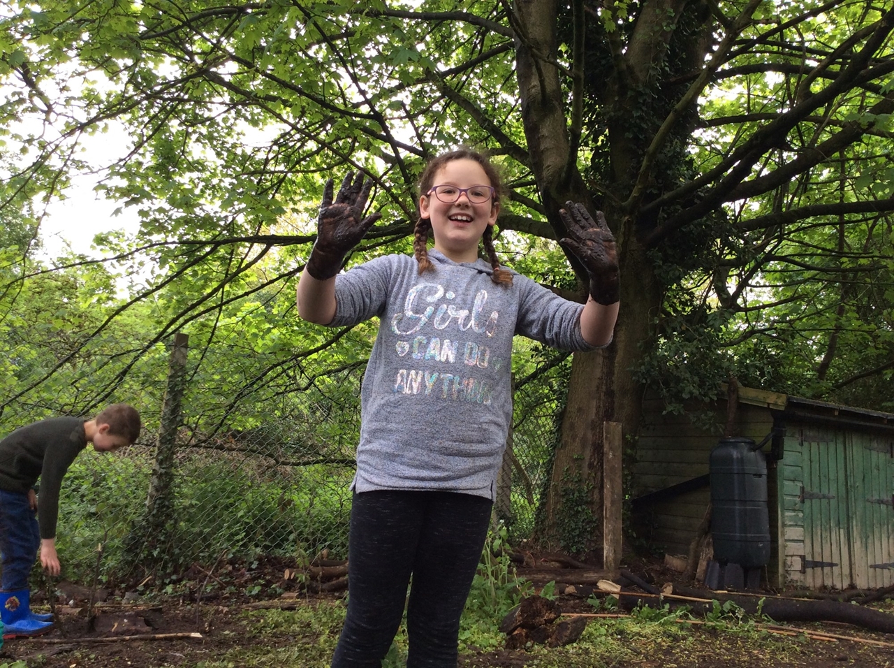 In Forest School, we had a lovely time creating Mud Castles in the rain!