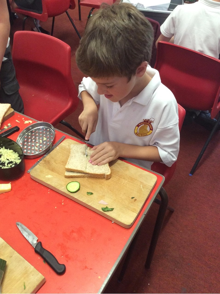 The children then created and designed their own sandwich which they then made using a range of cutting and spreading skills.