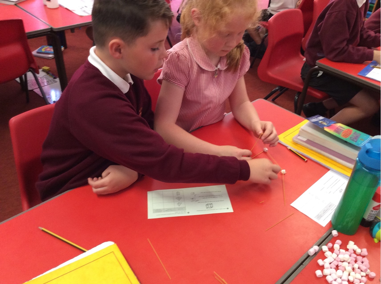 We then had a go at constructing our own 3D shapes out of spaghetti and marshmallows to be able to then answer some questions.